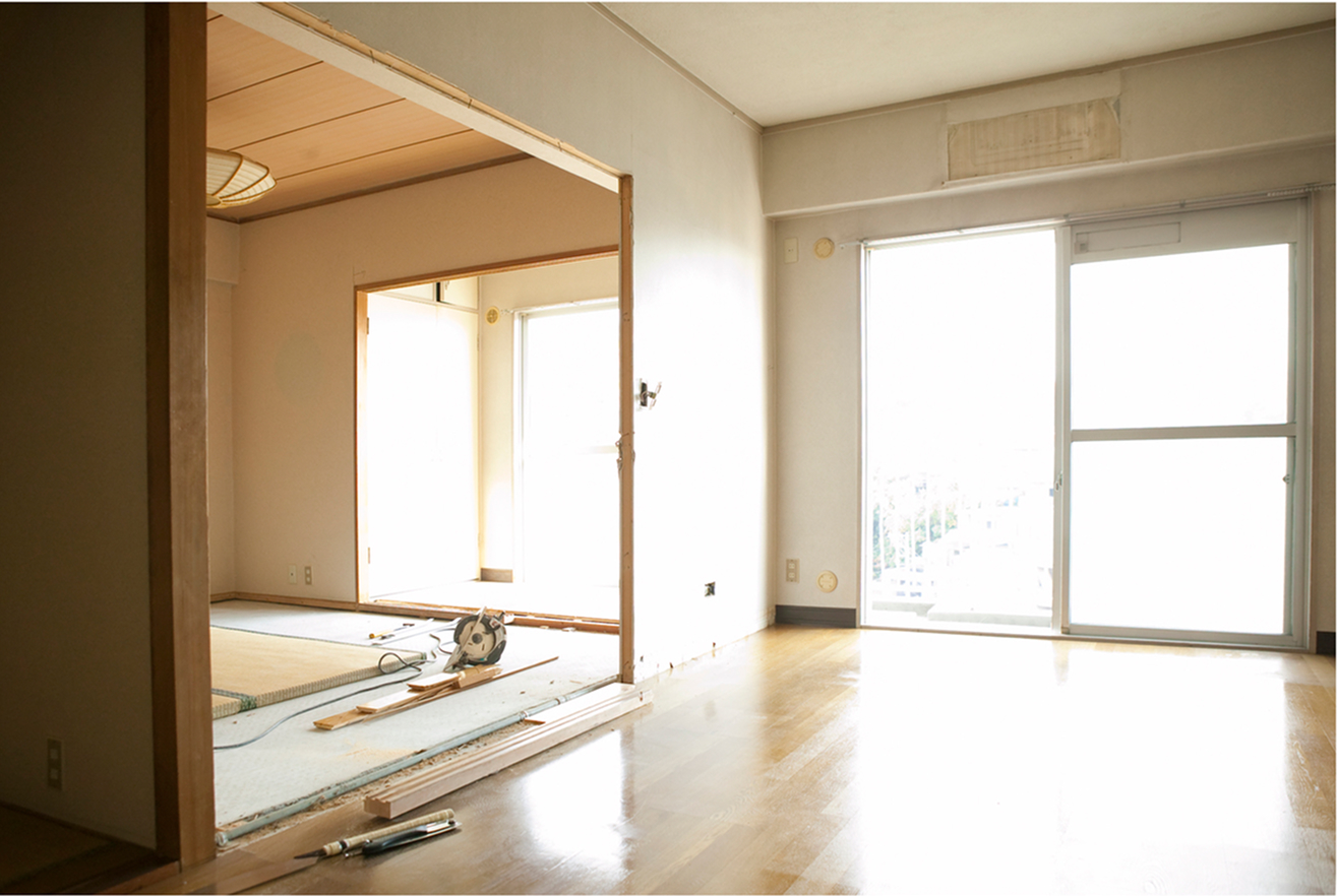 築30年のマンションをフルリノベーション。水回りを移設し、LDKを中心としたホテルライクな間取りへ。