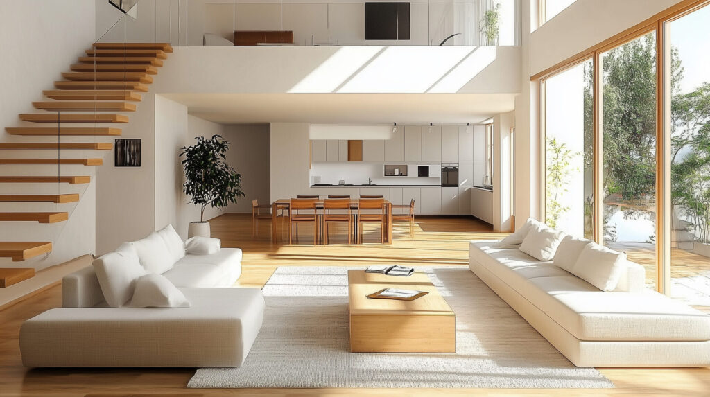 • 無垢材×白壁で明るい空間に