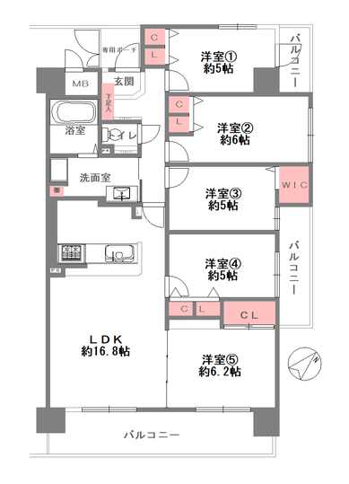 バルコニー面積 | 18.93㎡「南東向き」 |